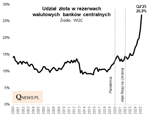 Reasumując, niewątpliwie jesteśmy być może świadkami epokowych zmian w postrzeganiu złota. Jego udział w rezerwach banków centralnych jest najwyższy od ok. trzech dekad.