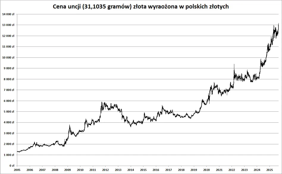 Na początku września notowania królewskiego metalu podawane w polskim złotym przebiły kwietniowy szczyt i po raz pierwszy w historii znalazły się powyżej 13 000 złotych za uncję trojańską. Uncjowa moneta bulionowa dostępna na miejscu kosztuje teraz ok.13,5 tys. złotych. W tej cenie zawarte są koszty wytworzenia monety, jej transportu oraz marża dilera.
