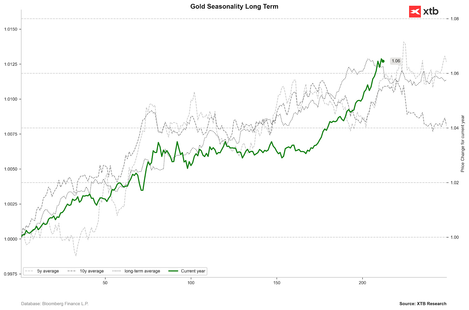 Sezonowość długoterminowa wskazuje, że w najbliższym czasie możliwy jest szczyt, a końcówka roku może być płaska.