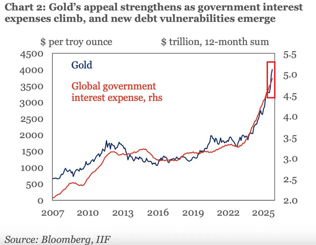 Perspektywy dalszego wzrostu kosztów obsługi długu nie tylko w USA, ale i wspomnianej Japonii, gdzie zapowiadane jest dalsze popuszczanie fiskalnego pasa, są być może jednym z czynników tłumaczących gwałtowny wyskok cen złota. Wszystko wskazuje na to, że czerwona linia na wykresie (globalne koszty obsługi długu) pozostanie w trendzie wzrostowym.